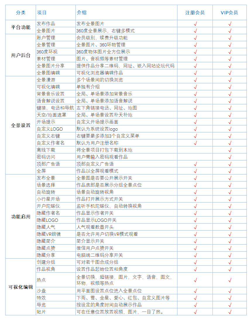 根据全景图展示的功能不同,可分为以下几类和收费方式:展示场景;漫游场景;功能场景;高级功能。